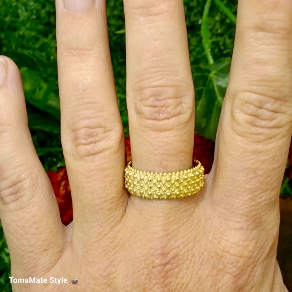 L’anello ha un’altezza di 0,5 cm e un diametro base di 2,2 cm (misura 19), modificabile su richiesta prima dell’acquisto.