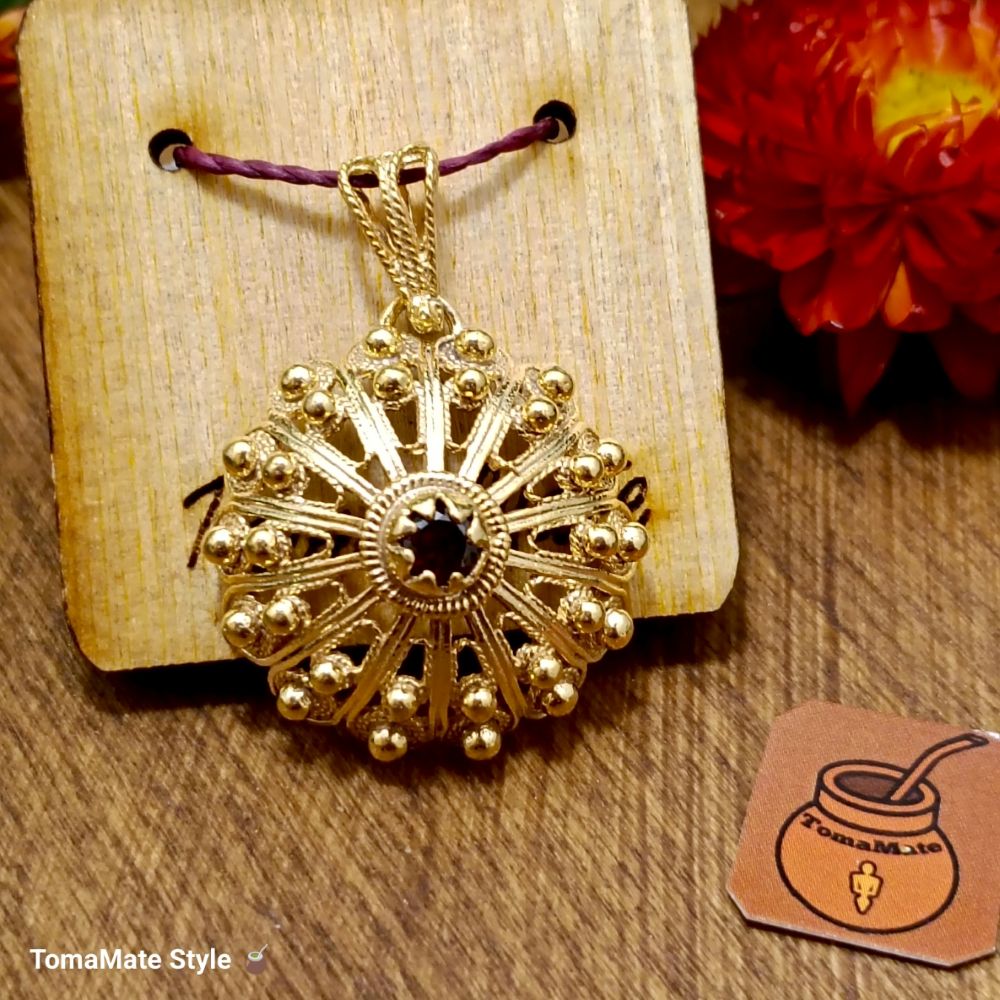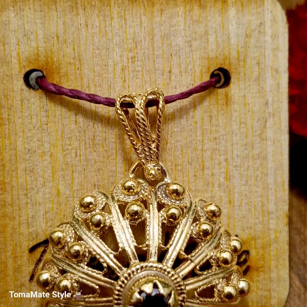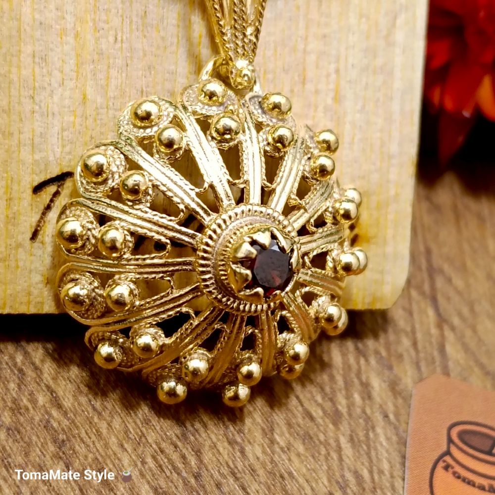TomaMate Style Vi propone uno spezzato del Bottone Sardo con punto luce granato in Argento 925 bagnato in Oro.