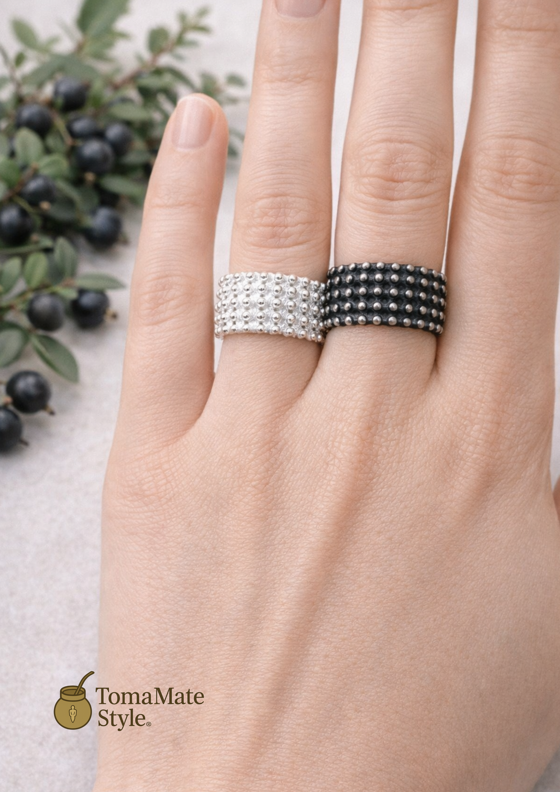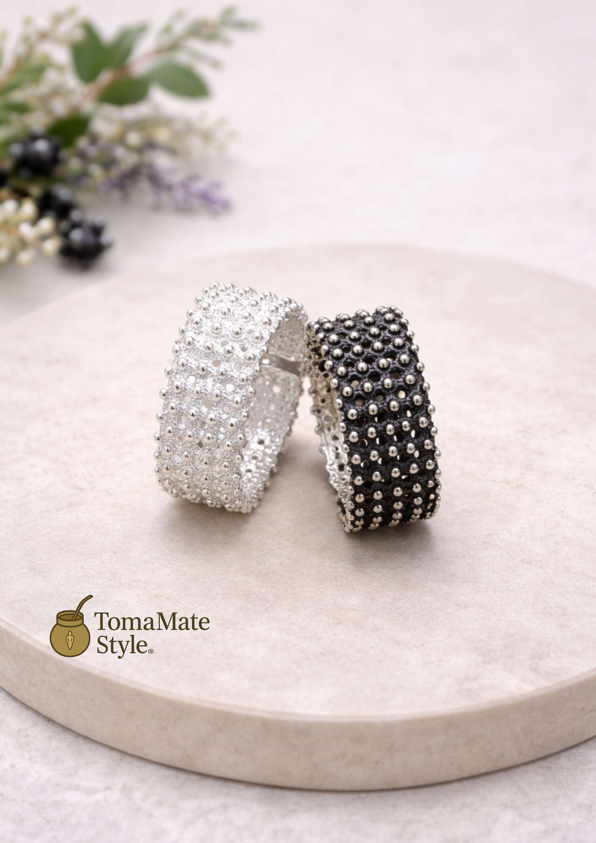 Argento Brunito, ottenuto tramite un processo di ossidazione dell’argento che conferisce il caratteristico colore scuro e una maggiore resistenza