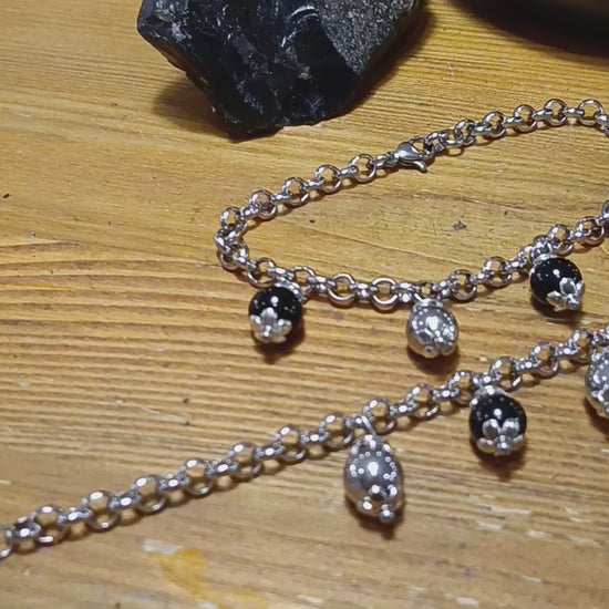 Su Coccu Onice Nero e Ematite è un bracciale artigianale unico, che fonde la tradizione sarda con la potenza energetica dei cristalli.