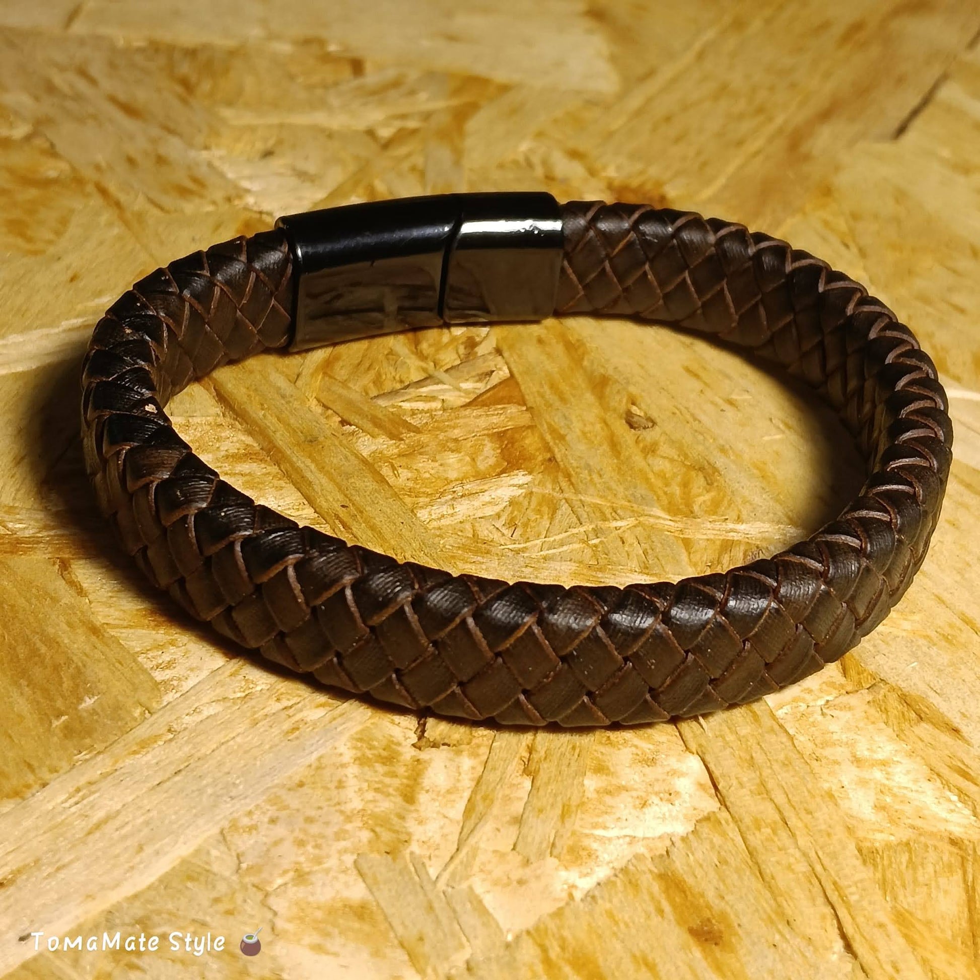 La lavorazione intrecciata dell’ecopelle crea una trama regolare e armoniosa che dona al bracciale profondità e movimento. Il colore marrone esalta il design classico, rendendo questo accessorio facilmente abbinabile a qualsiasi stile.