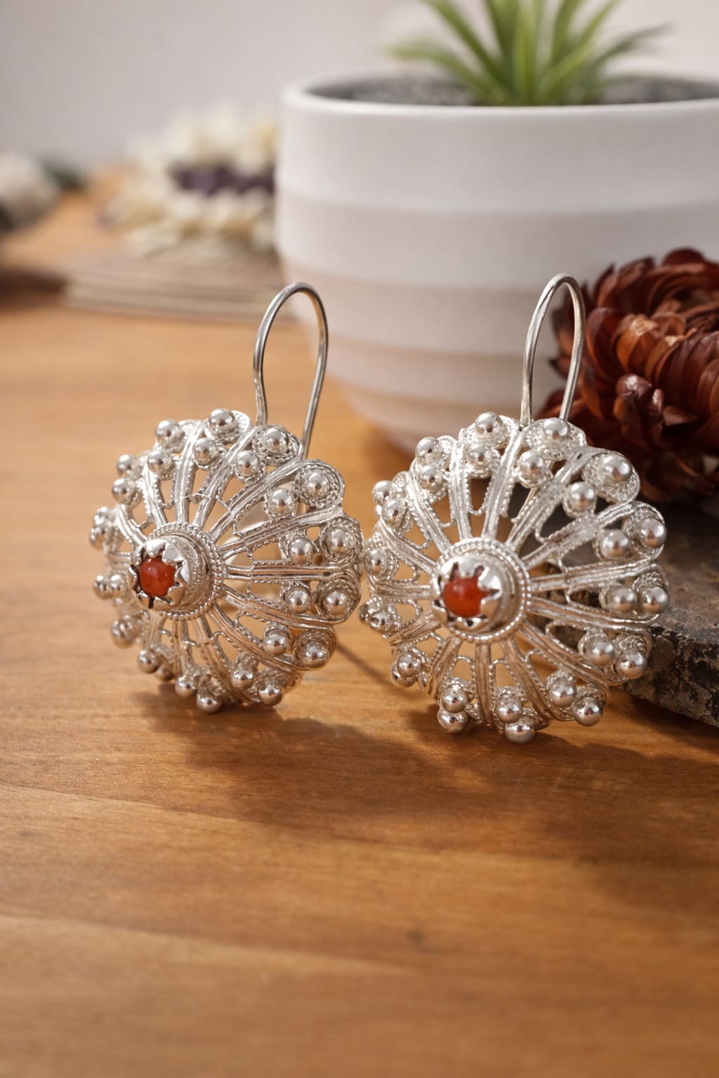Orecchini filigrana corallo