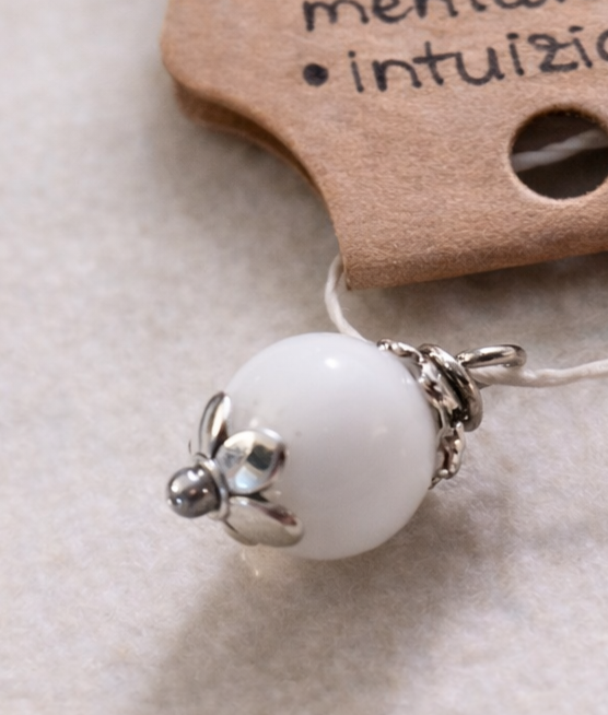 Realizzato rigorosamente a mano, l’amuleto è composto da una pietra dura da 8 mm, racchiusa tra due coppette in zama argentata e un perno in acciaio, materiali anallergici e resistenti, scelti per accompagnare e proteggere l’energia della pietra.